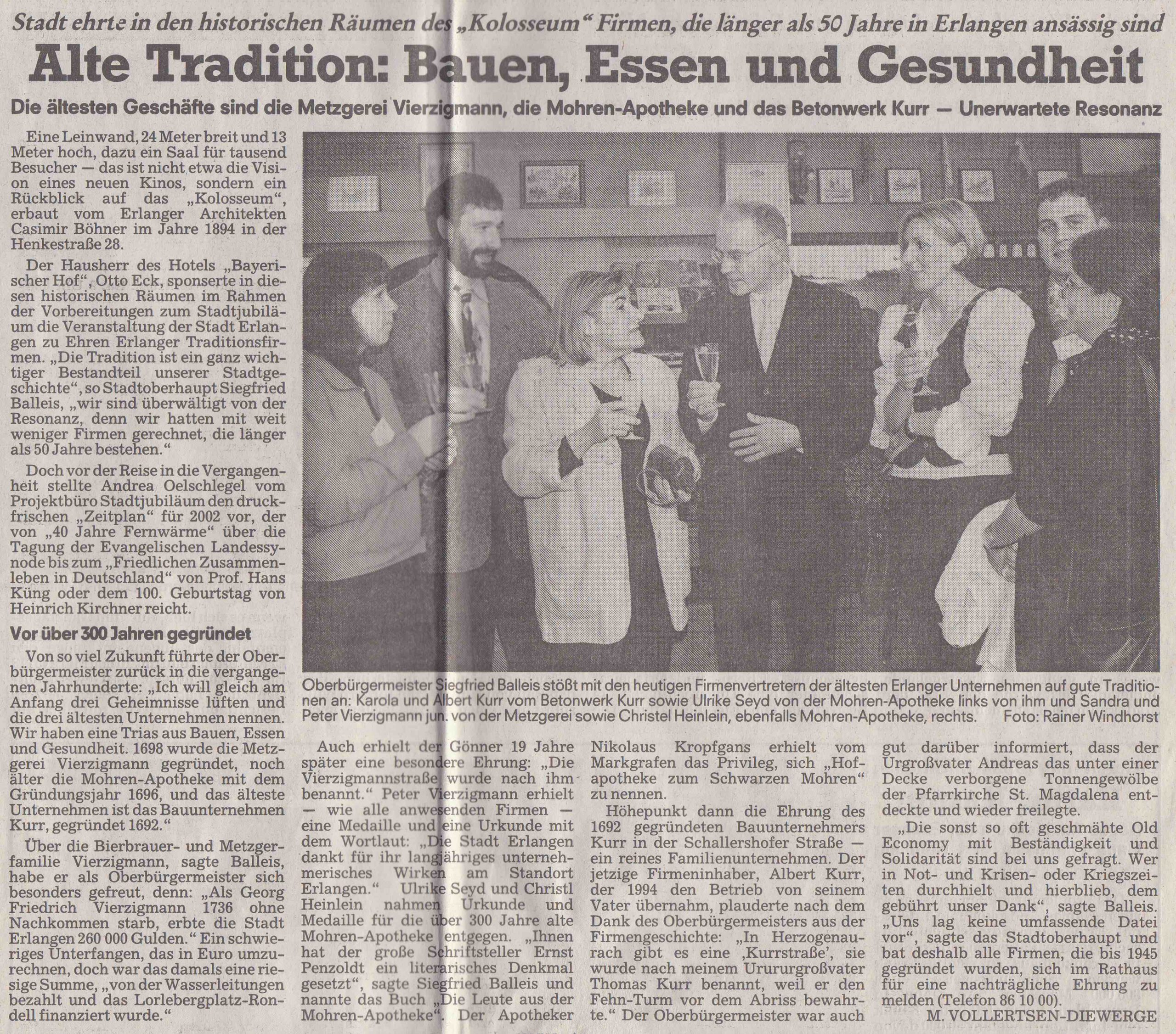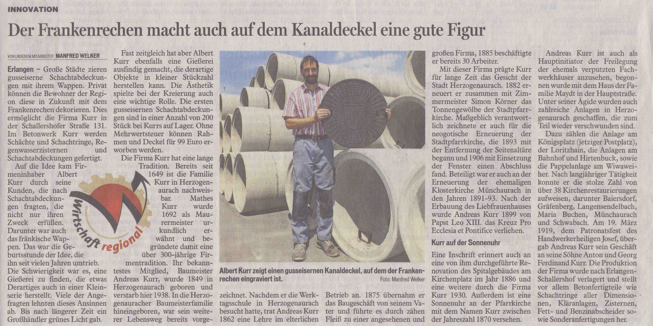 Das Betonwerk Kurr entstammt der ehemaligen Baufirma Kurr aus Herzogenaurach. Der jetzige Erlanger Standort war ursprünglich die firmeneigene Sandgrube in der bald auch Betonartikel für den Eigenbedarf in Handarbeit hergestellt wurden.